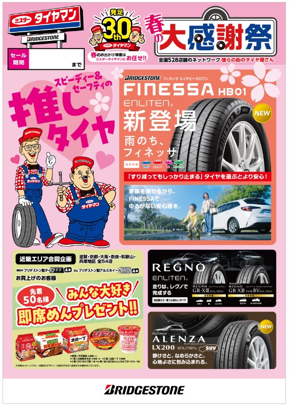 また、期間中にブリヂストン製タイヤを4本セットでご購入いただくと